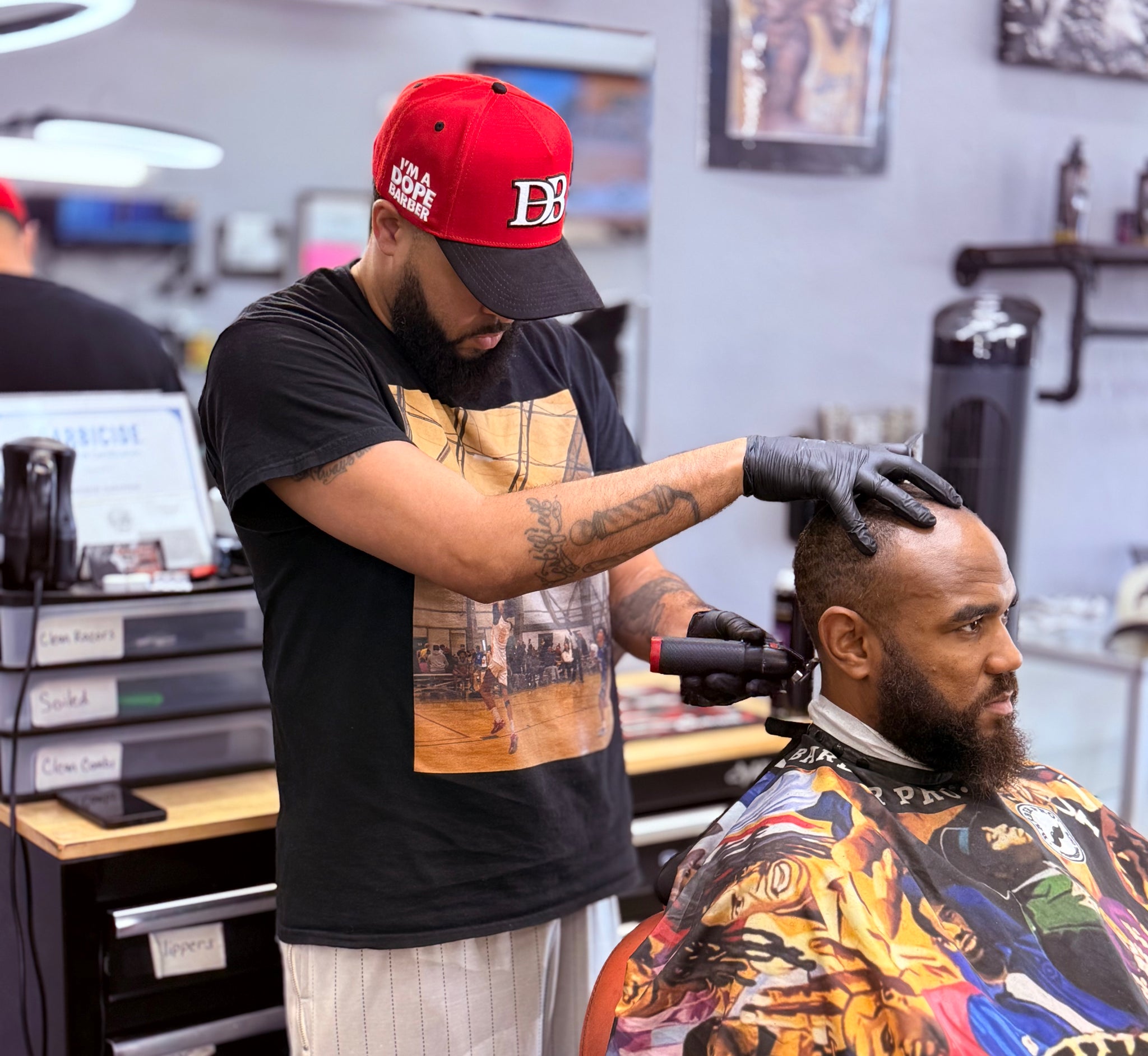 Cursive “Dope Barber” script on the side